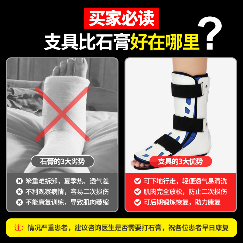 Ankle support (for use in shoes) Long version (right) Long version for calf injury (left) Short version for calf injury (right) Walking plaster shoe short (left) Walking plaster shoe with four straps plus