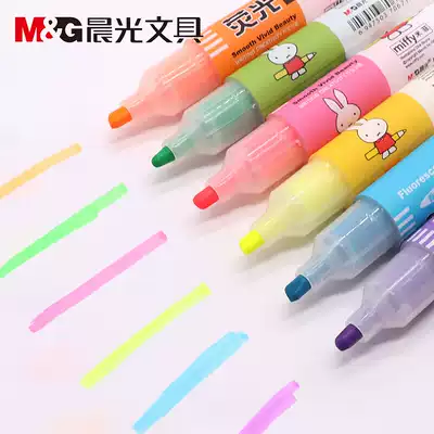 Chenguang large-capacity fluorescent pen original flavor color silver light Press marking pen student Wrong Question mark key note pen multi-color Direct type continuous ink candy color Miffy fluorescent fragrance 6 colors