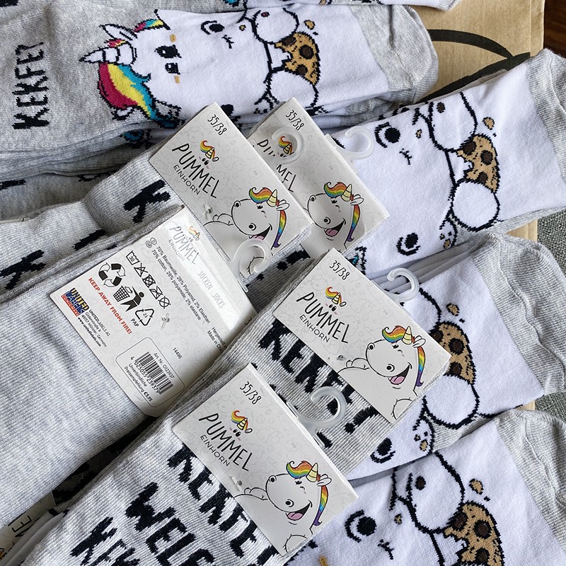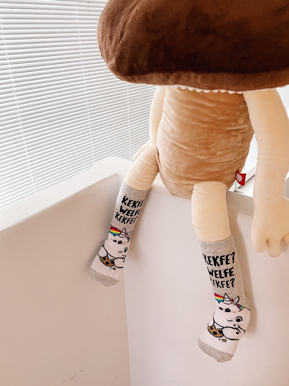 Lucky Socks ) Fat-faced Unicorn Eating Cookies Autumn and Winter Mid Tube Socks