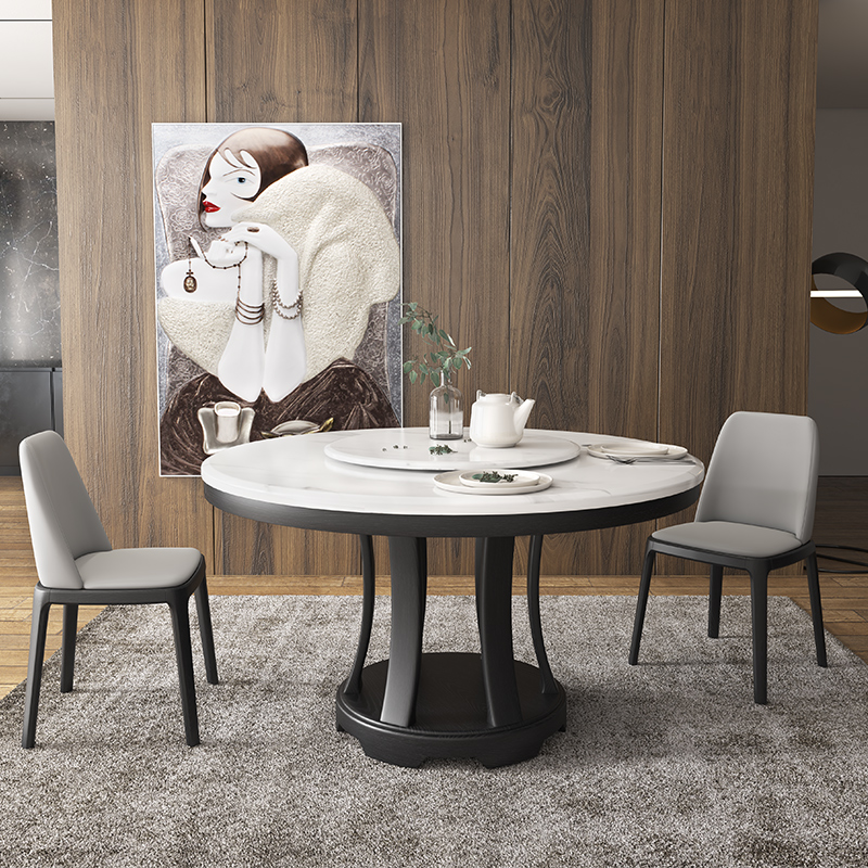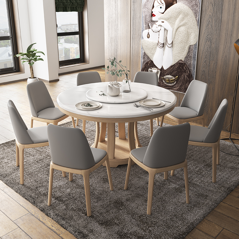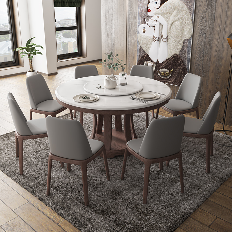 Italian light luxury marble dining table and chair combination round solid wood round table modern minimalist home small apartment