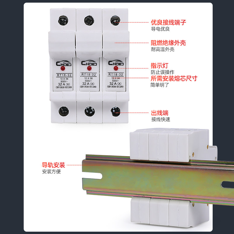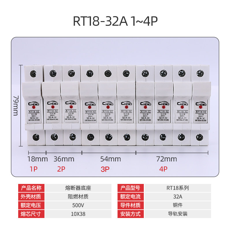 Fuse base RT18-32X with lamp rail type 10*38 fuse holder 1P2P3P4P isolation switch 32A