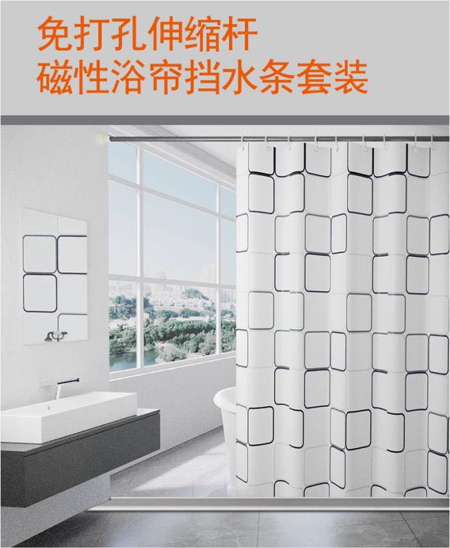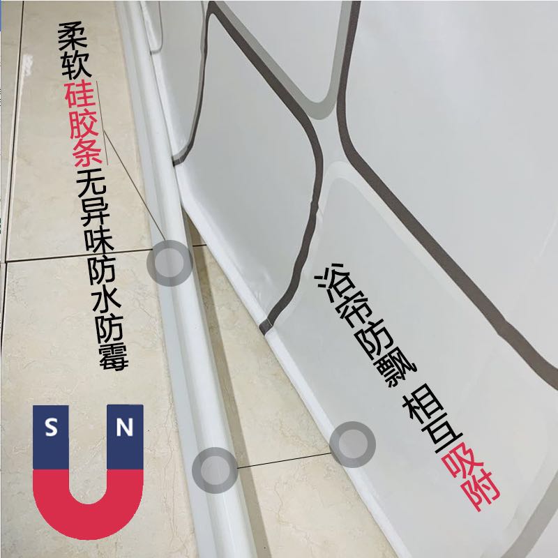 Magnetic water retaining strip free of punching bath curtain rod suit shower toilet dry and wet separation I adsorption bath curtain cloth-Taobao