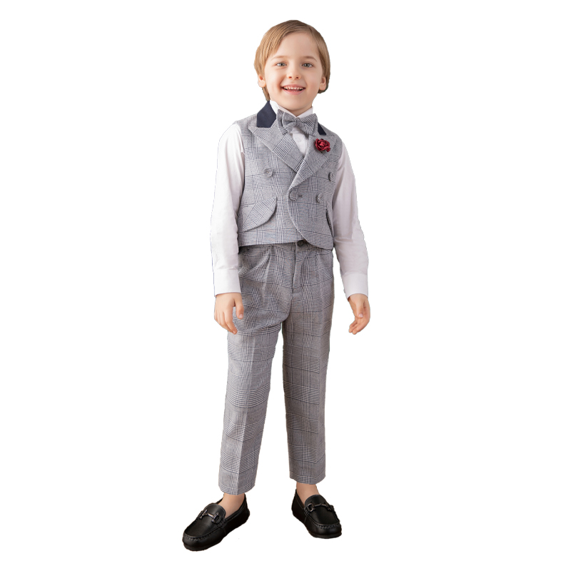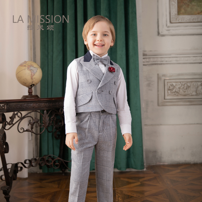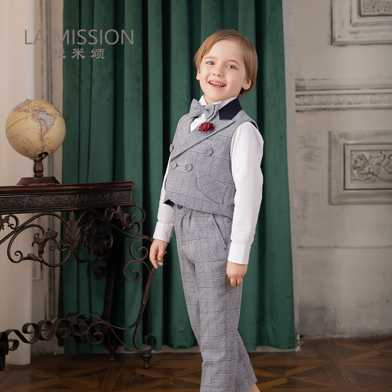 Lamison's new blue tone British Swallowtail vest suit fashion boy small suit one-year-old suit boy