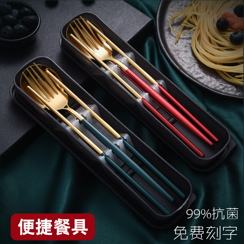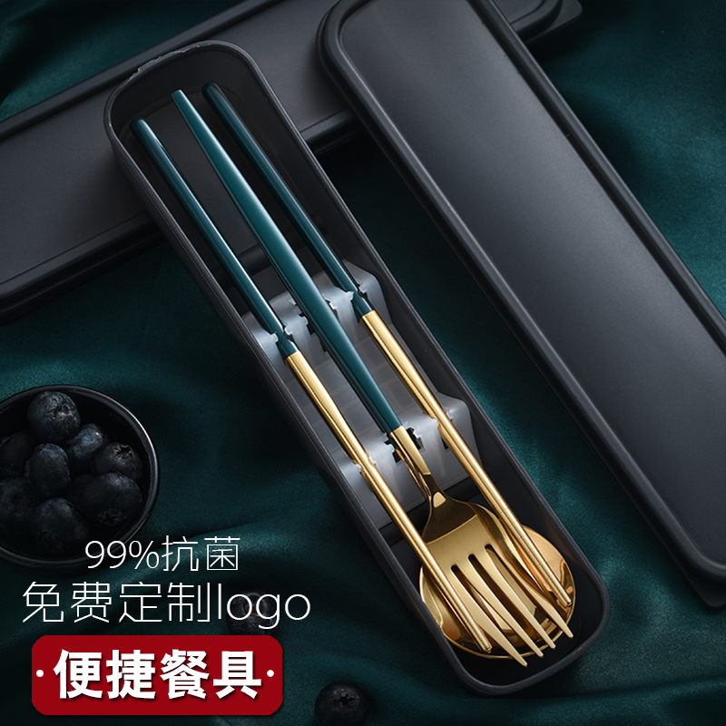 Qiaole core stainless steel portable tableware three piece set chopsticks spoon fork single student adult storage box