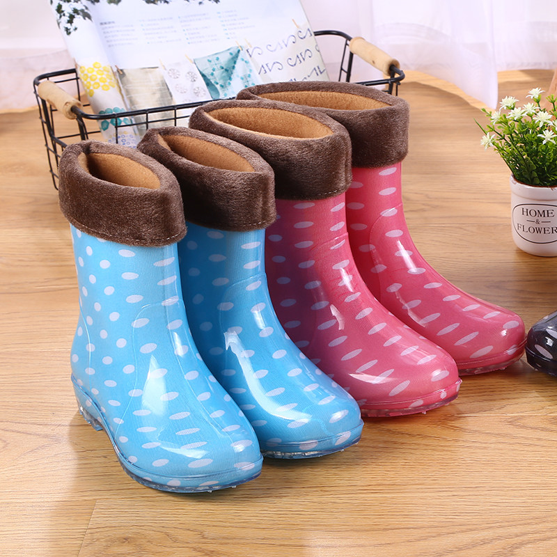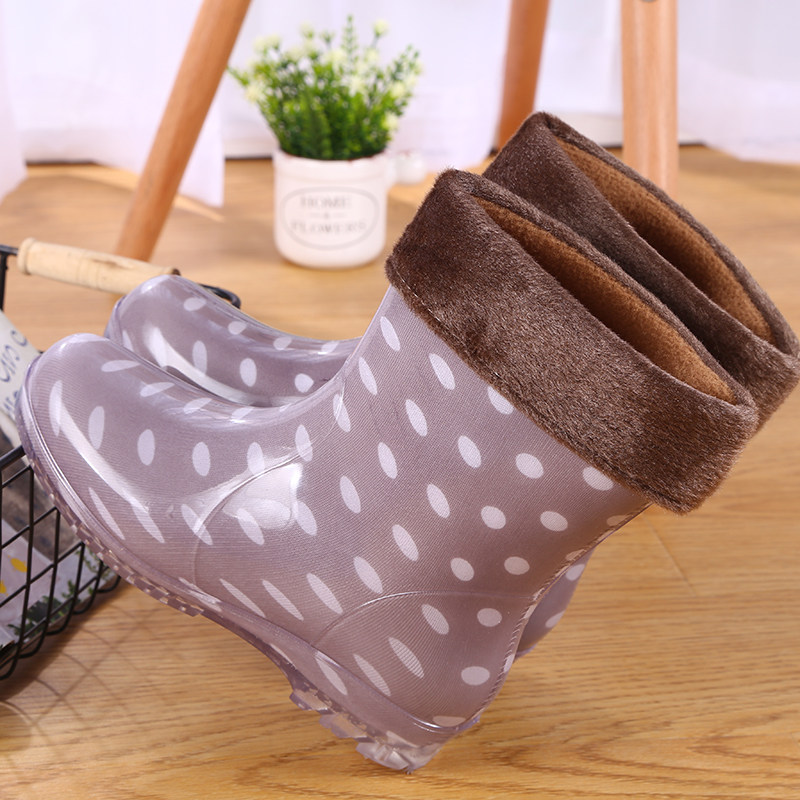 Waterproof shoes plus velvet cotton rain boots warm non-slip mid-tube rain boots rubber shoes overshoes women's short tube jelly adult fashion winter