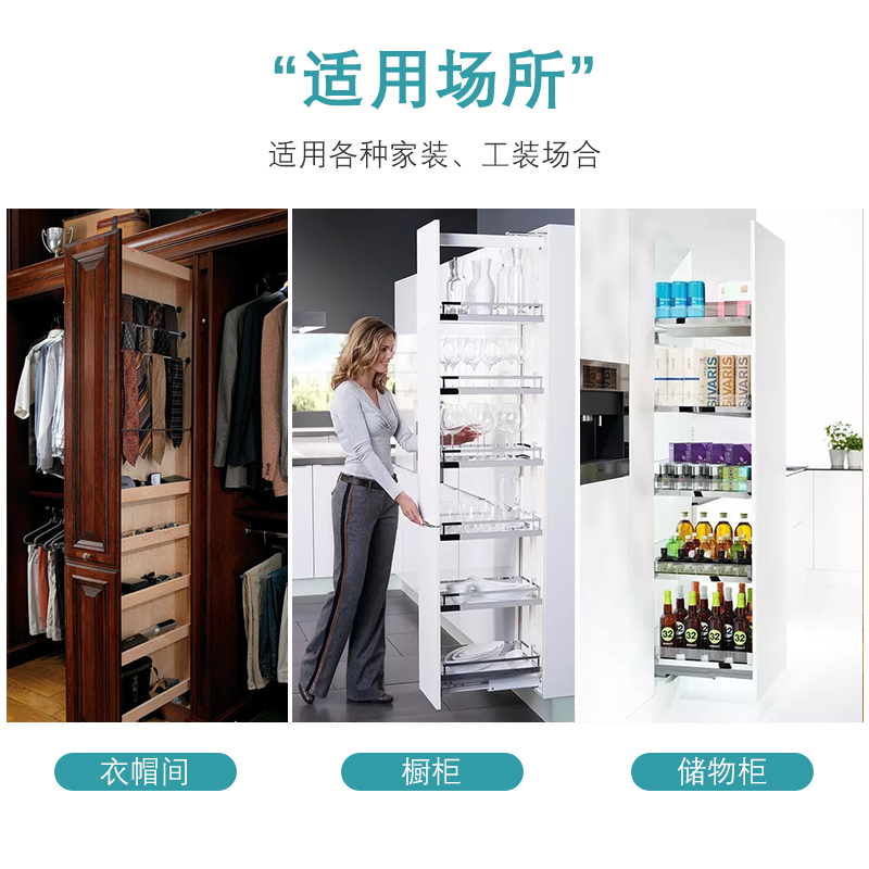 High-depth cabinet heavy duty heaven and earth slide rail hydraulic damping silent buffer thickened wardrobe cabinet push-pull up and down track
