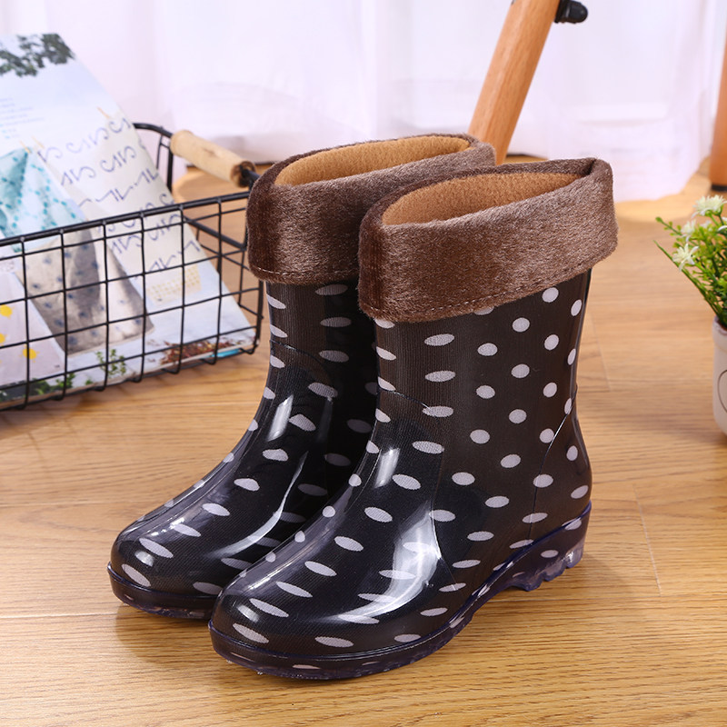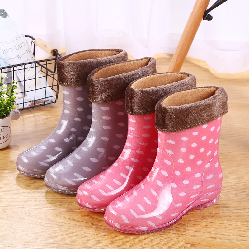 Waterproof shoes plus velvet cotton liner rain boots warm non-slip removable rain boots rubber shoes overshoes women's short tube adult fashion