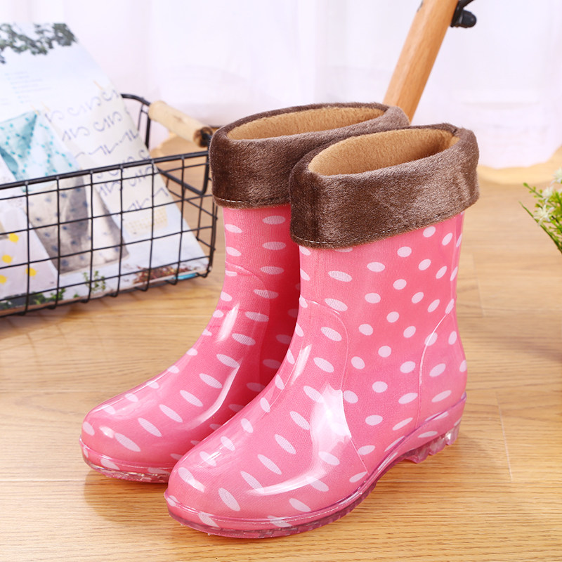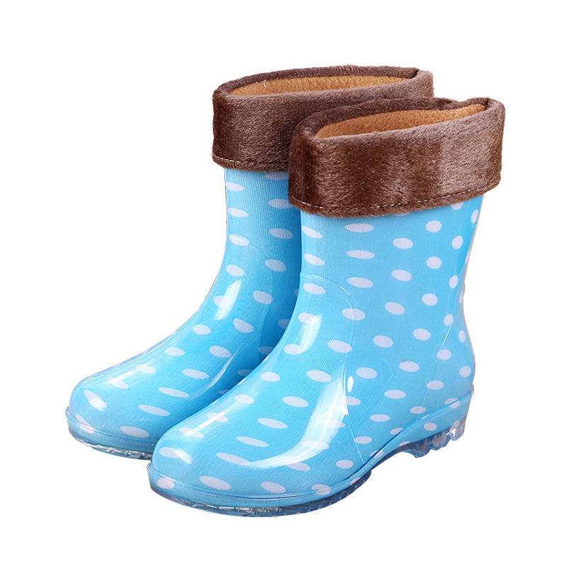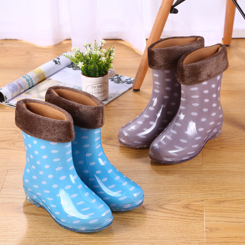 Waterproof shoes plus velvet cotton liner rain boots warm and non-slip treading water rain boots rubber shoes overshoes women's medium and short tube adult fashion