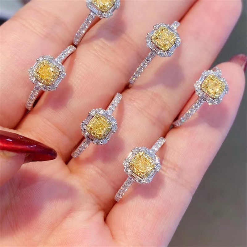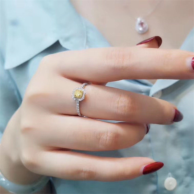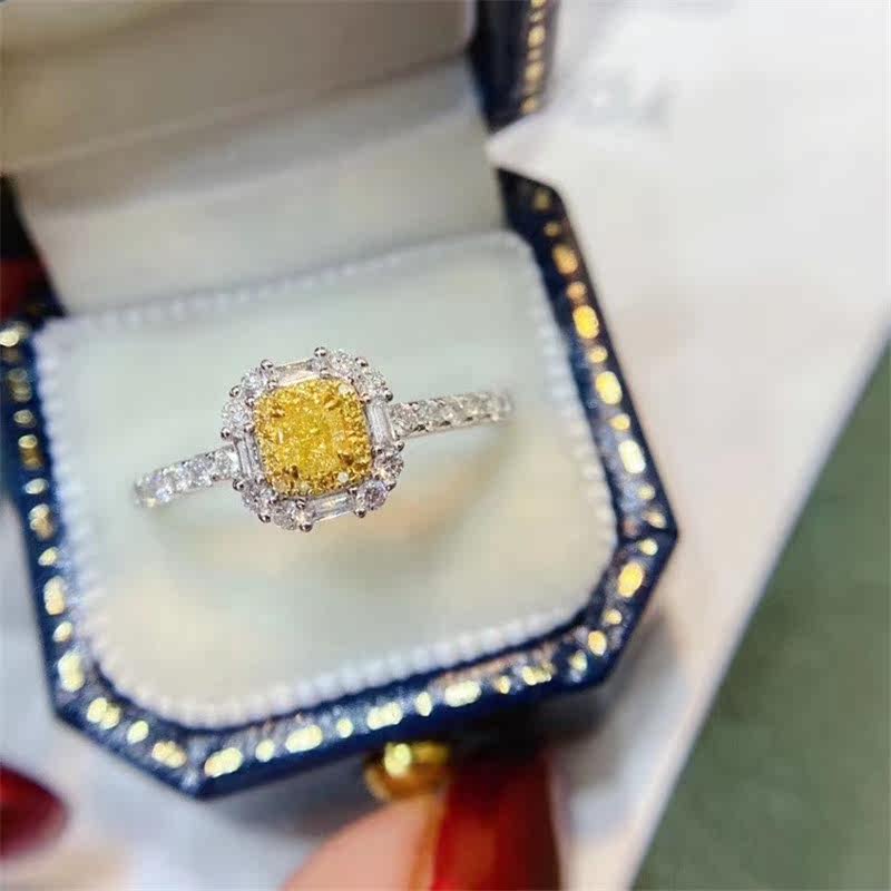 Classic T - square design of 18 - minute yellow diamond diamond 37 points total 55 points diamond 18K platinum temperament ring