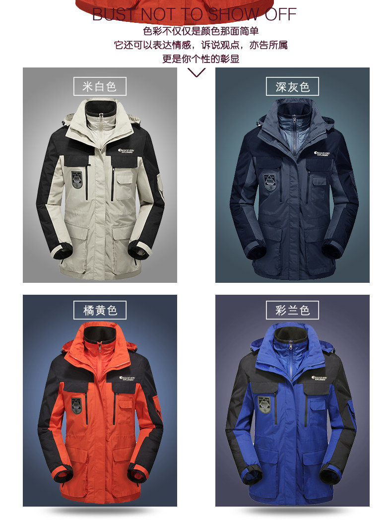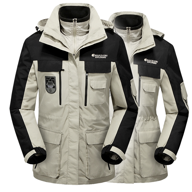 Detachable three-in-one two-piece set of submachine clothing male multiple pockets ski suit female Korean plus suede thickened mountaineering clothing