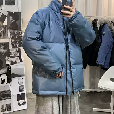 Leather down jacket men's short style brand Hong Kong style 2020 new students autumn and winter pu disposable loose jacket