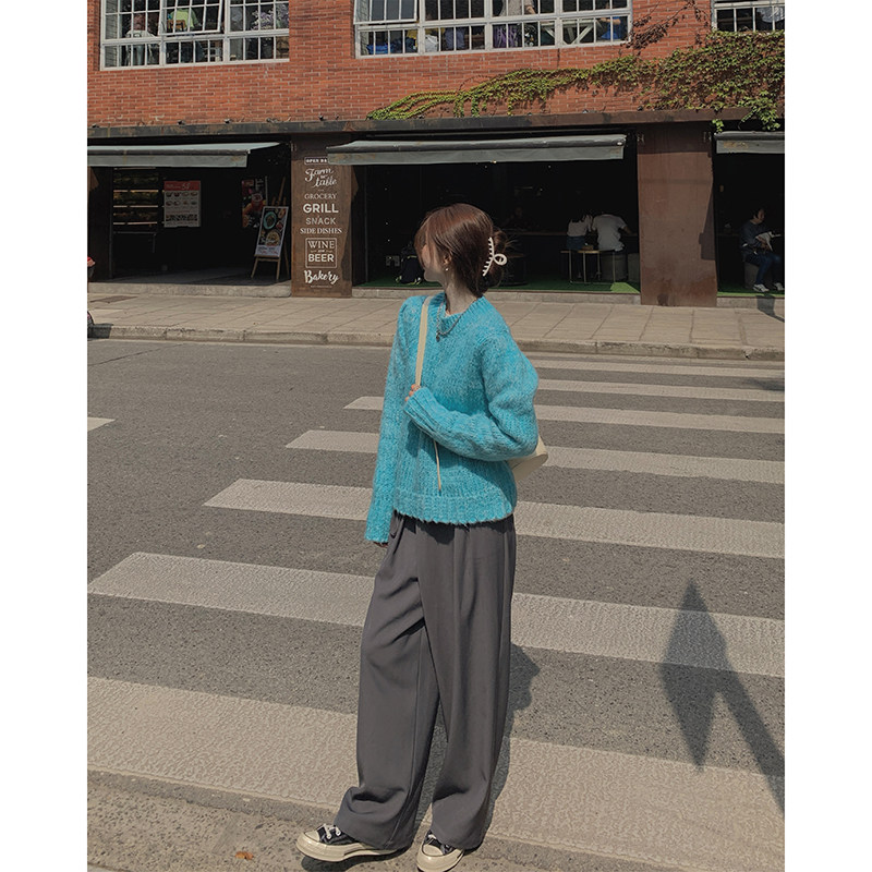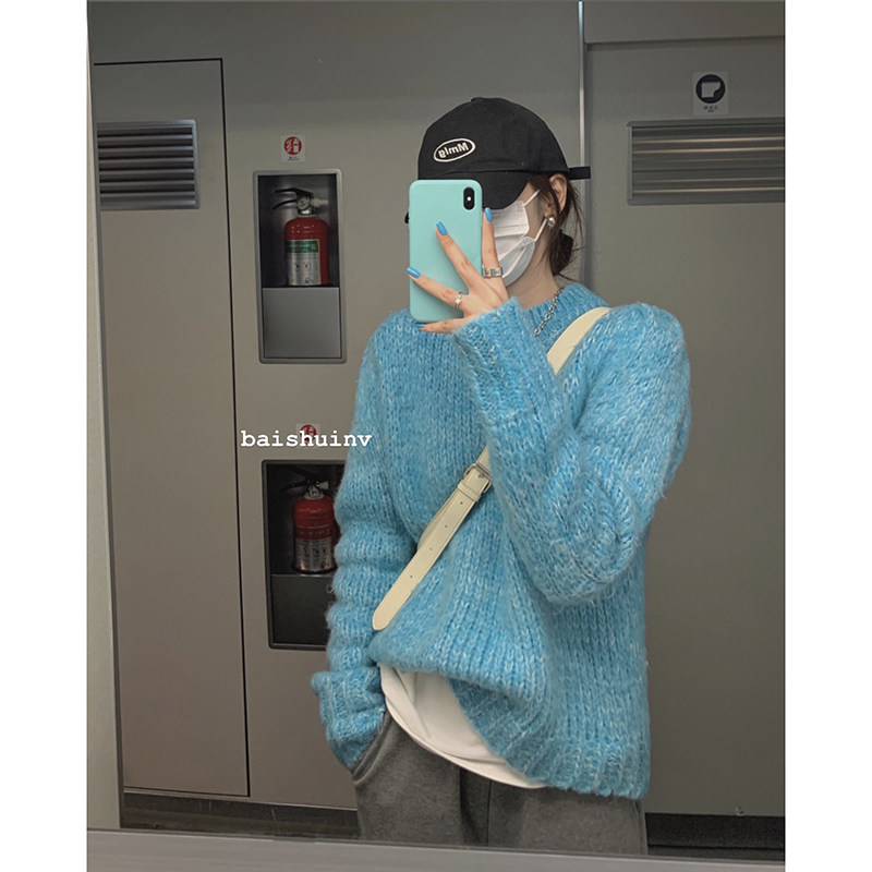 White water women mohair sweater women's 2020 new spring and autumn loose lazy wind thickened blue pullover