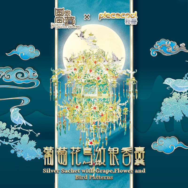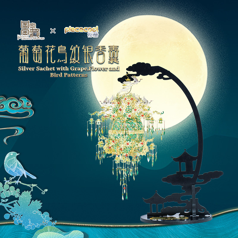 Parquet Cool Grape Flowers Bird Tattoo Silver Fragrant Cystic Lamp Palace Gufeng 3D Solid Metal Manual Jigsaw Puzzle Assembly Model
