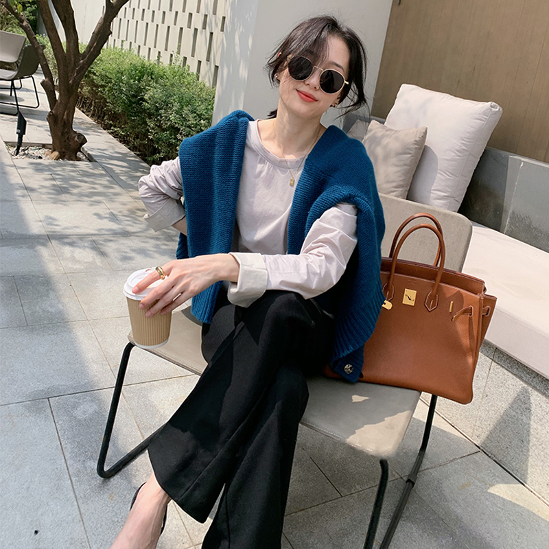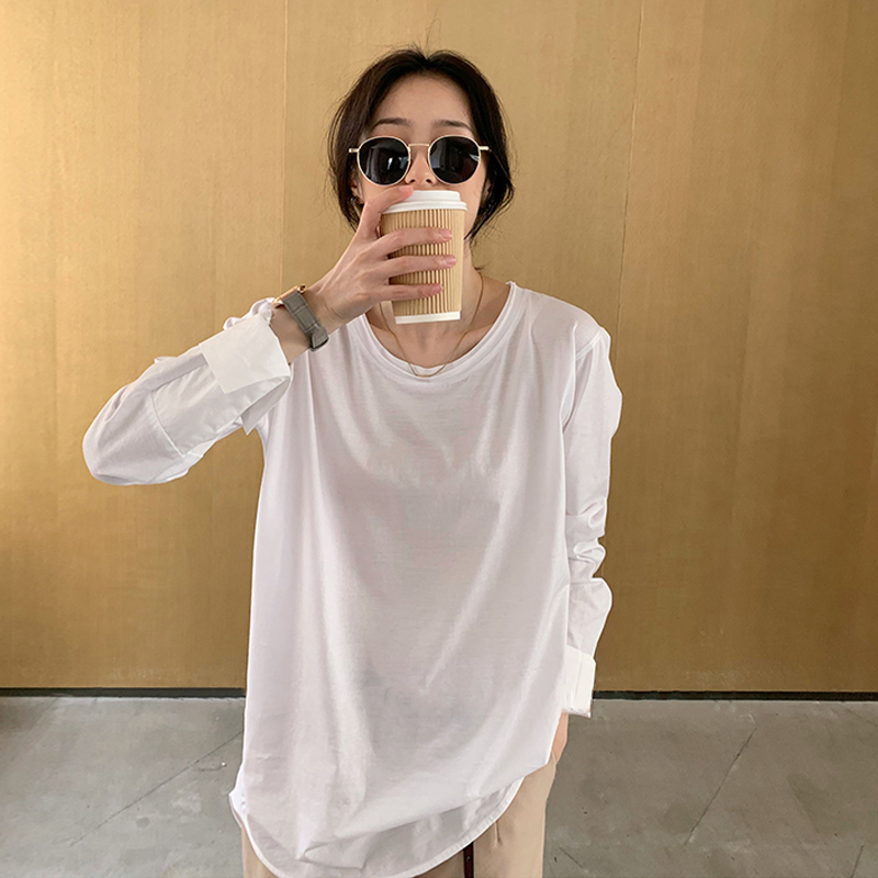 Design sense outside wear loose stacked shirt sleeve top tide inside white bottoming shirt cotton T-shirt women autumn and winter ins