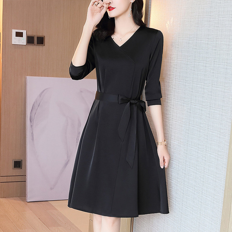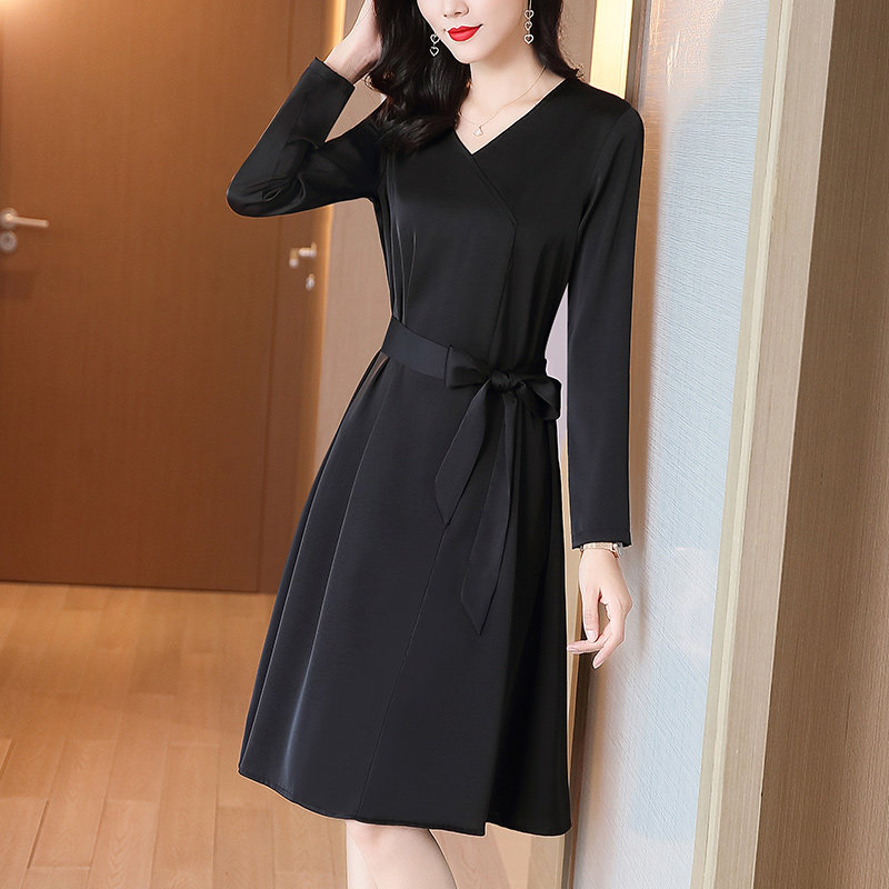 High-end light luxury dress 2020 autumn and winter new French temperament waist long-sleeved black foreign school Hepburn small black dress
