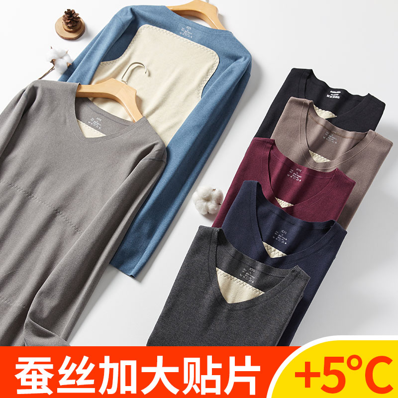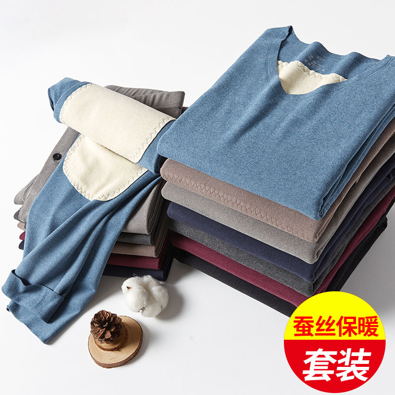 Silk patch warm suit men's winter plus velvet thickened long johns long johns no trace bottoming shirt heating German velvet underwear