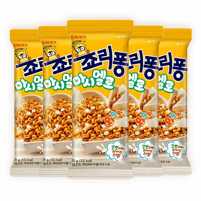 South Korea imports Crown Kerian barley granulated popcorn children's casual puffed snacks snacks zero food 74g x 5 packs