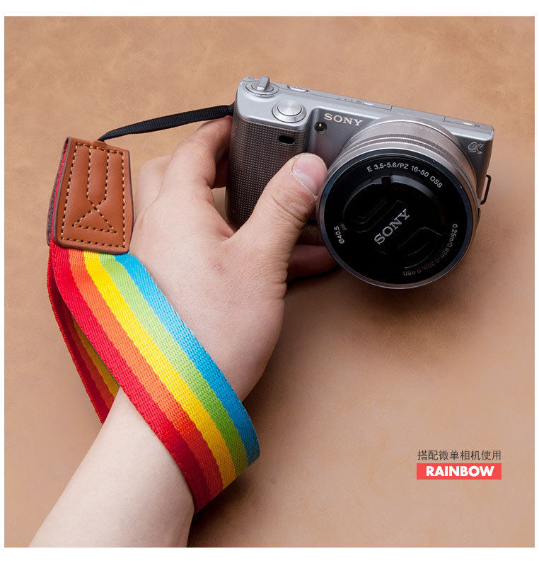 Rainbow striped wrist guard micro-single-eye camera polaroid small hole camera wrist strap lanyard
