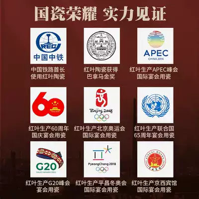 Chinese porcelain red leaf ceramics Jingdezhen tableware dishes set Household simple Chinese gift box set gift hand-painted
