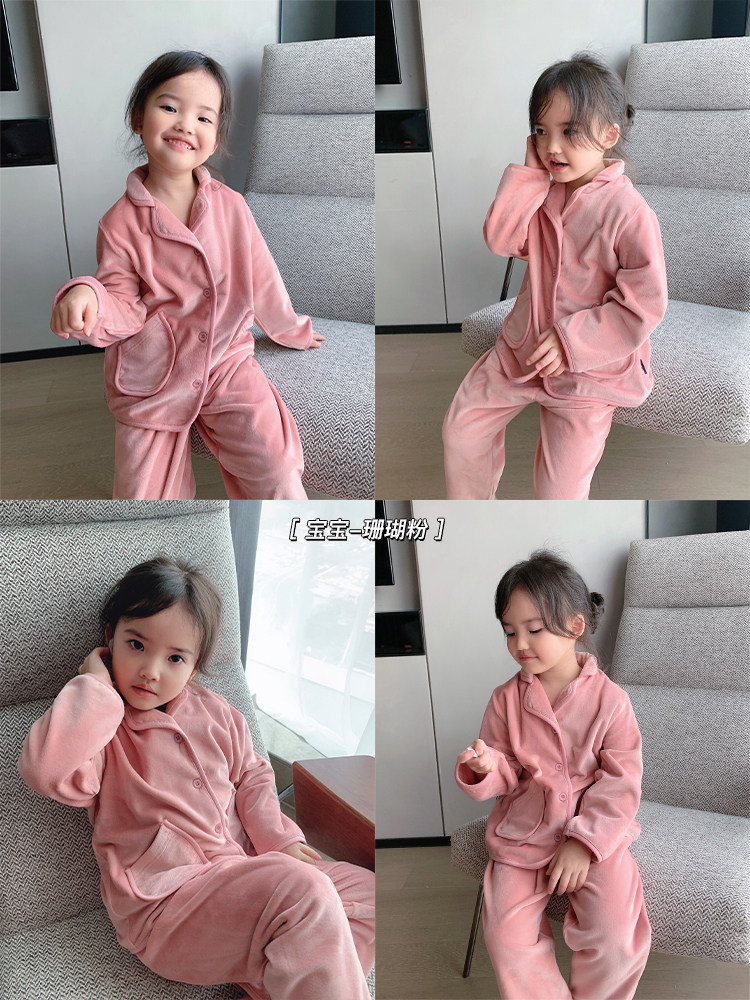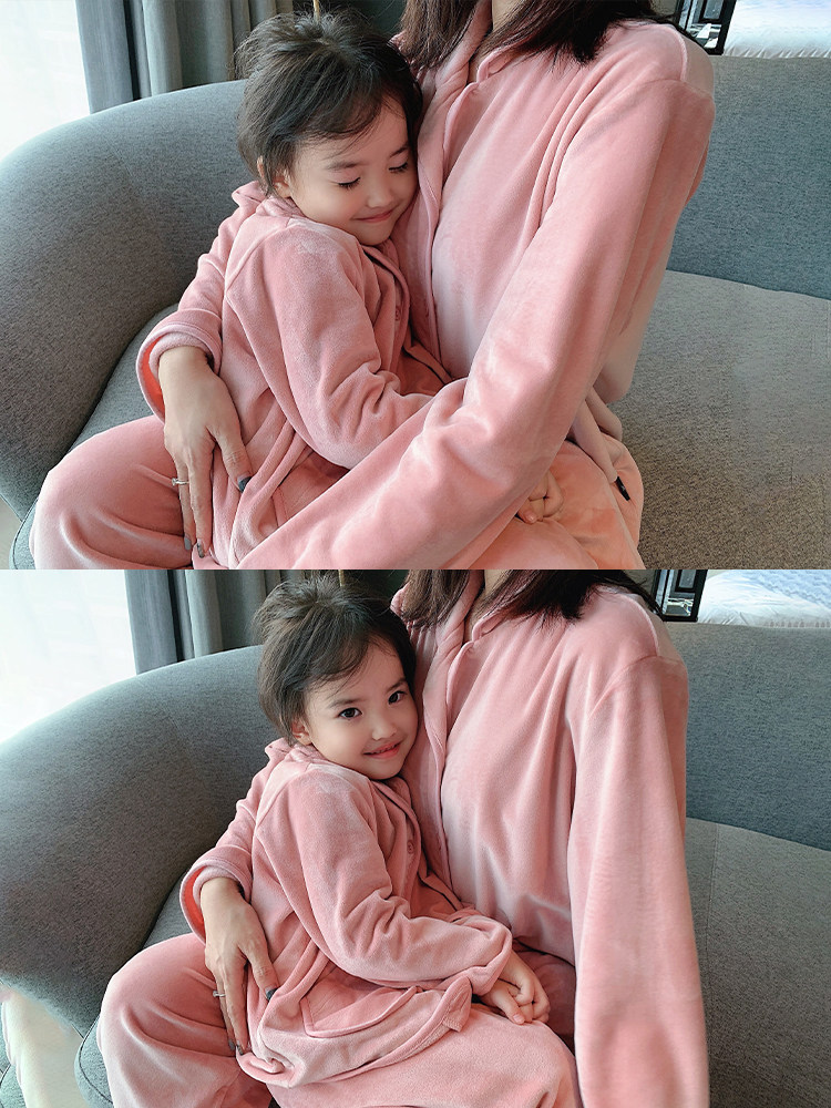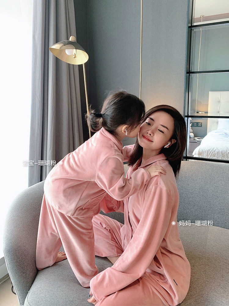 Chenchen mother and daughter wear autumn and winter new double-sided silver fox velvet parent-child home clothes warm children's long-sleeved pajamas set