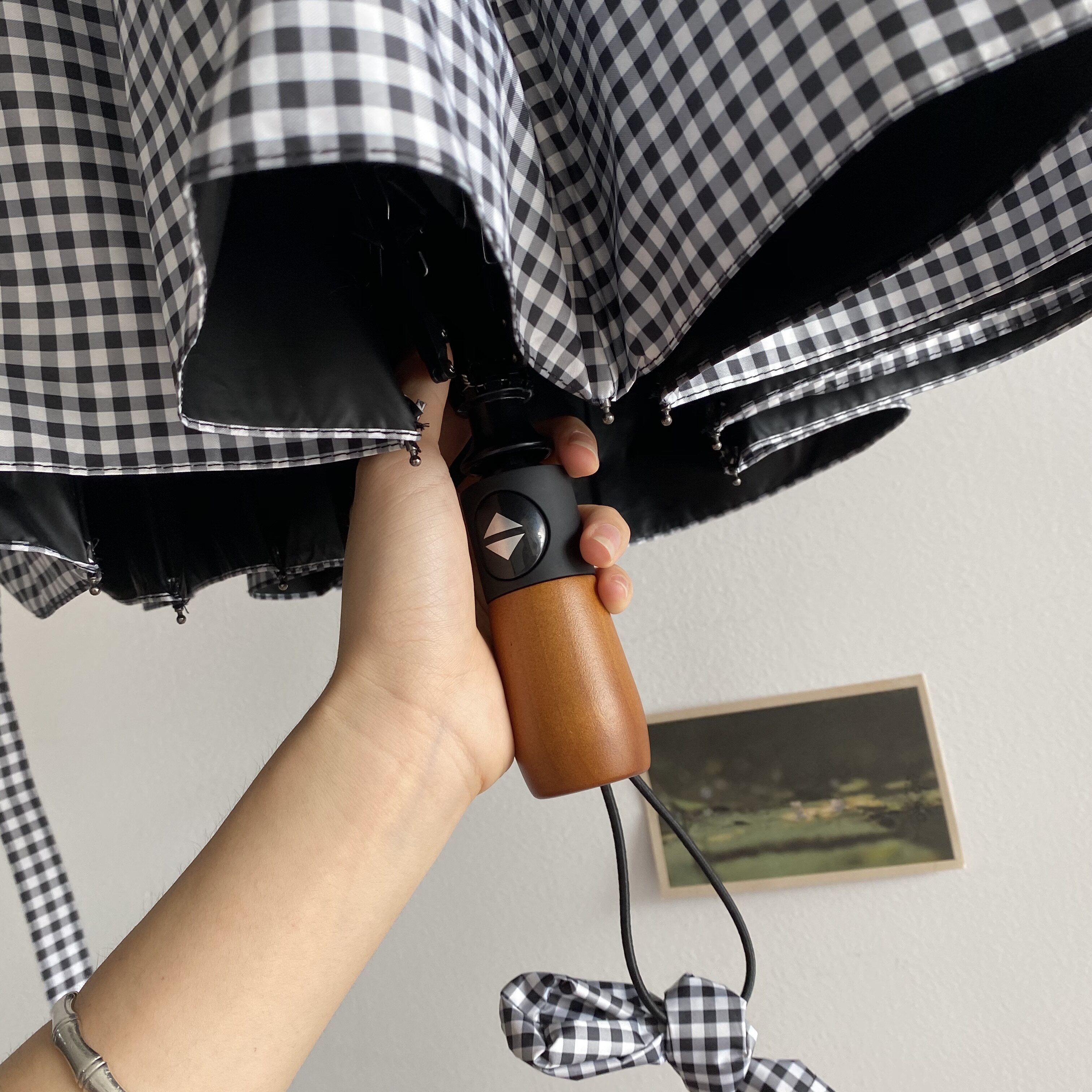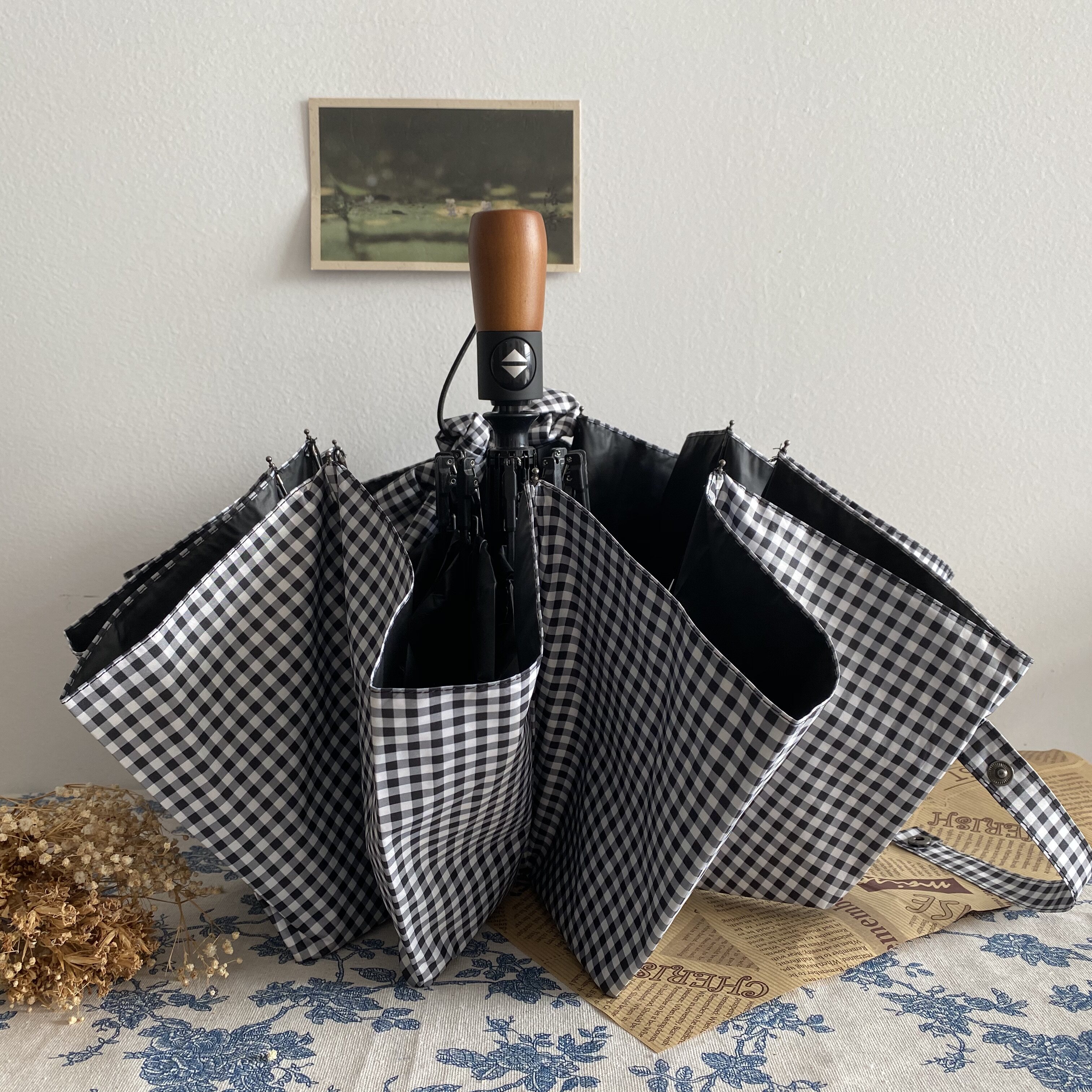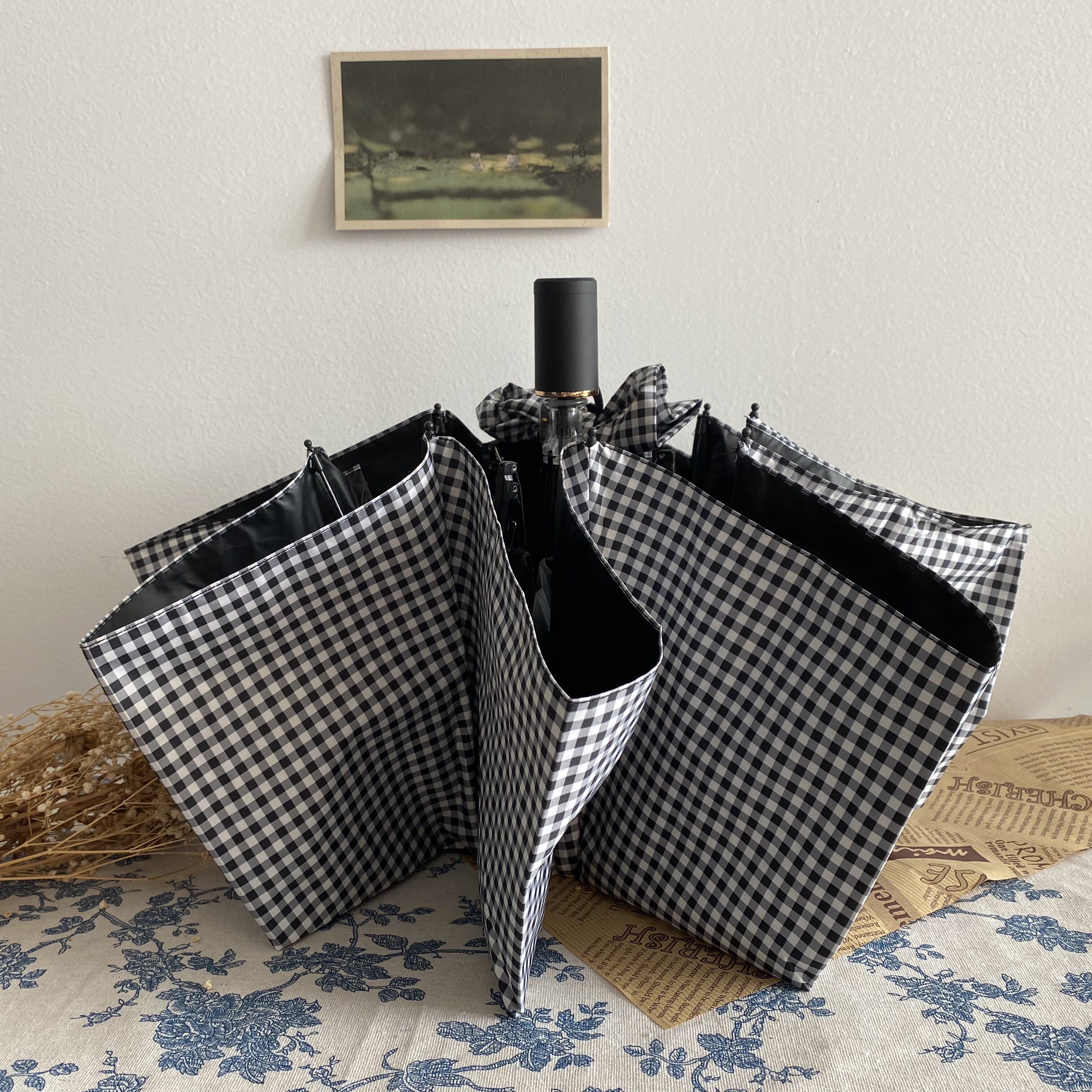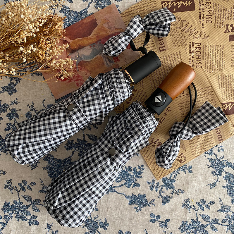 Eight-strand dual-use manual black and white grid color handleTen-strand dual-use automatic black-and-white grid color matching handle ten-strand umbrella automatic black and white grid retro handle ten-strand umbrella automatic black and white mesh metal handle ten-strand umbrella automatic dark gray