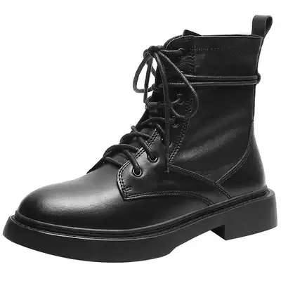 Leather Martin Boots Women Black 2020 English Wind Flat Spring and Autumn Single Boots Small Short Boots Slim Boots