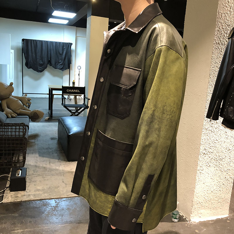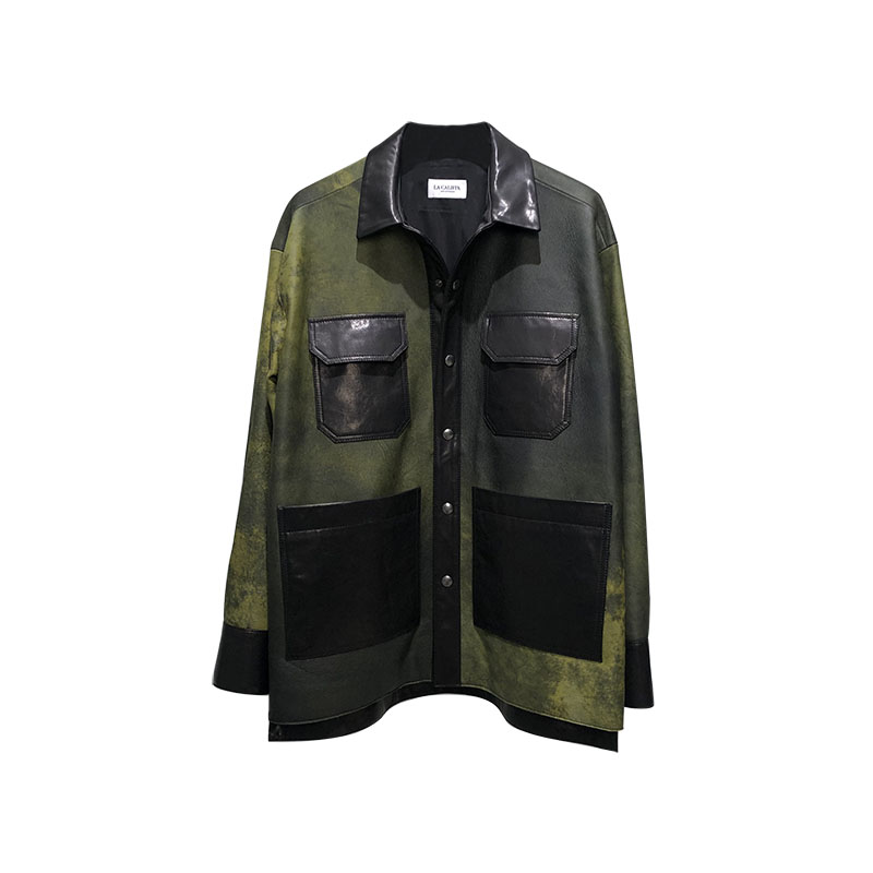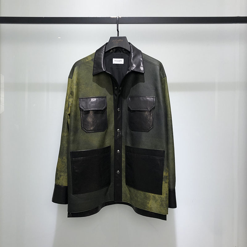 La Califfa designer artistic water-dyed sheepskin paneled Italian goat OS loose trench coat jacket