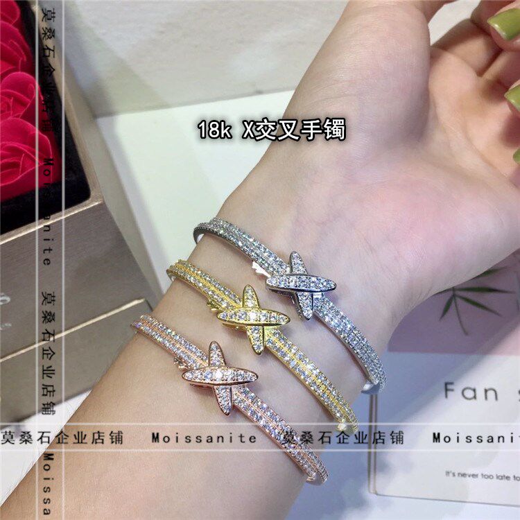 Pure Silver Gilded Single Row Drilling Bracelet Pure 18K Platinum Single Row Bracelet Pure 18K Rose Gold Single Row Drilling Bracelet Pure 18K Gold Single Row Drilling Bracelet Pure Silver Gold Plated X Cross Bracelet Pure 18K Platinum X Cross