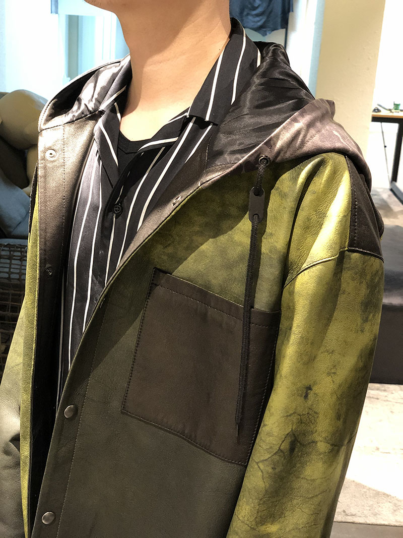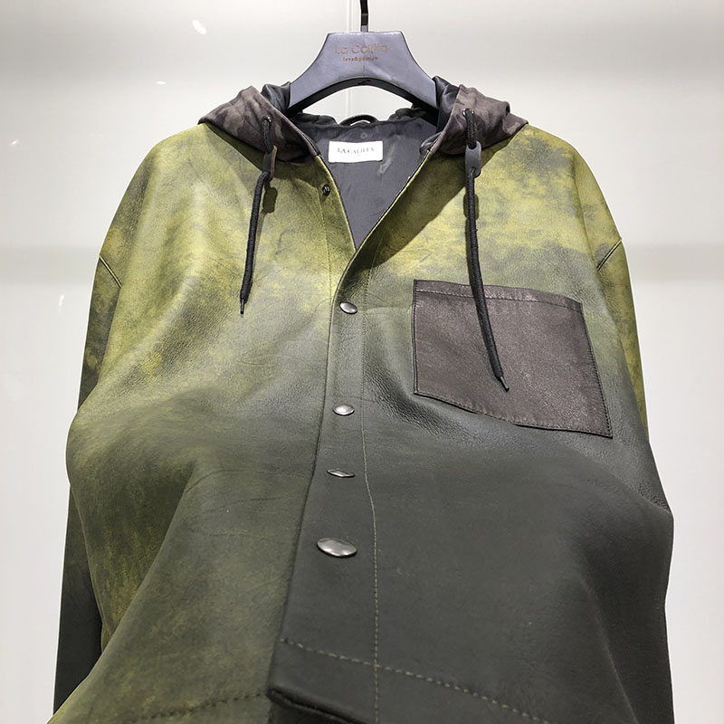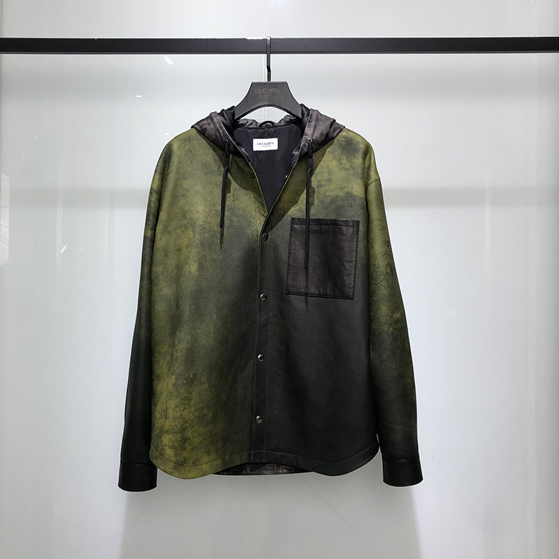LA CALIFFA designer art water dyed sheepskin OS loose version camouflage hooded jacket windbreaker