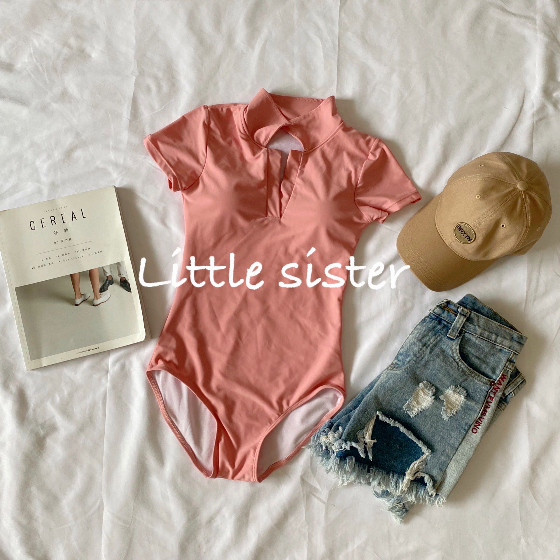 (Little sister) niche Polo lapel design temperament short-sleeved recreational diving surf swimsuit ins