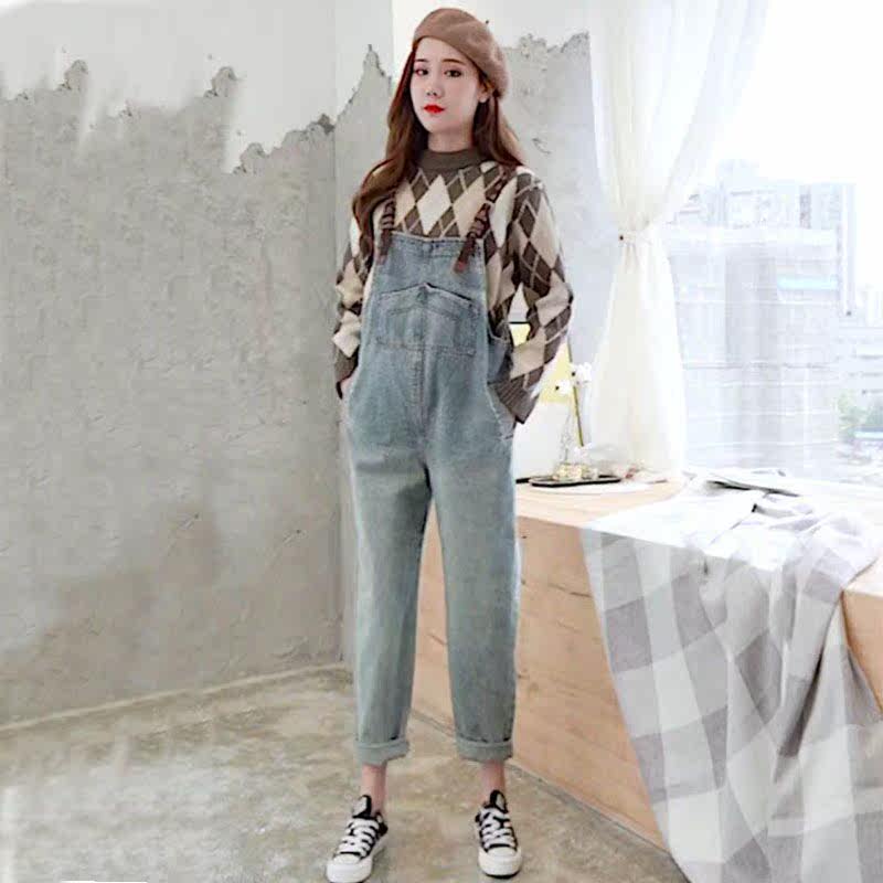 Maternity pants denim baby bag pants suit autumn fashion trendy mother autumn and winter outer wear loose large size maternity clothes spring and autumn