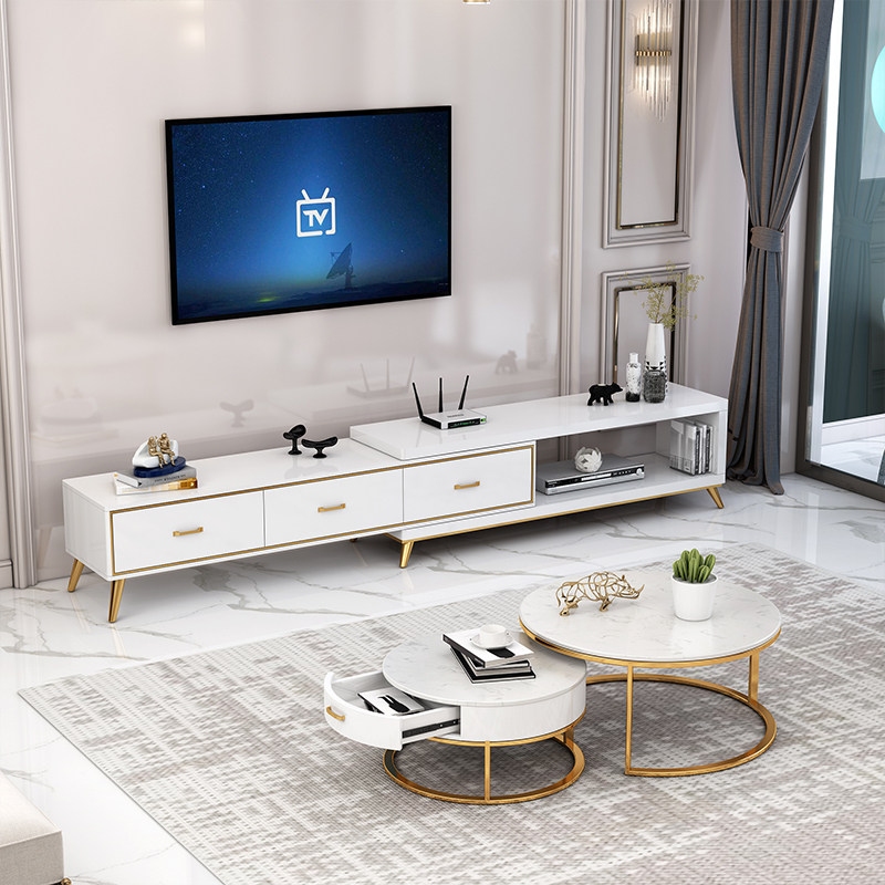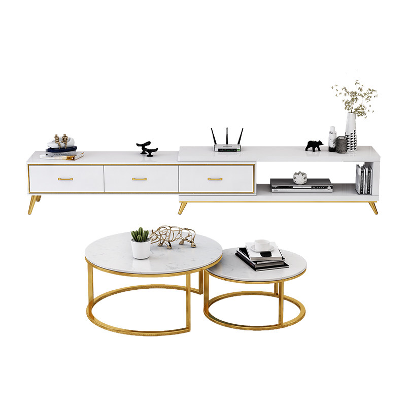 Telescopic TV cabinet + rock slab storage coffee table combination