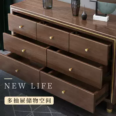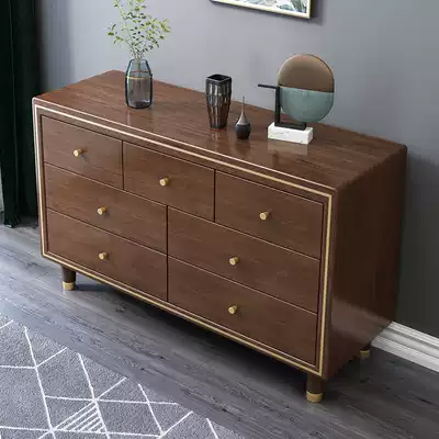 New Chinese solid wood bucket cabinet walnut seven dining cabinet bedroom finishing cabinet modern light luxury simple storage cabinet