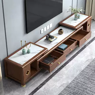 New Chinese rock board solid wood TV cabinet walnut coffee table combination living room small apartment telescopic home TV cabinet