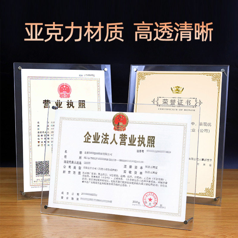 New version of the business license frame table A3a4 inch mounted acrylic photo frame Certificate of authorization Certificate of honor frame hanging wall