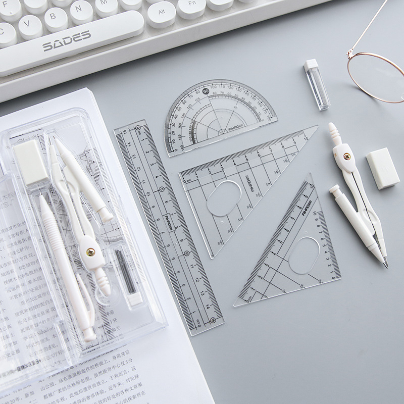 Small Fresh No Inprint Wind pure Compasses 78310 Students Professional Drawing With Ruler Protractor 8 Pieces Suit Batch