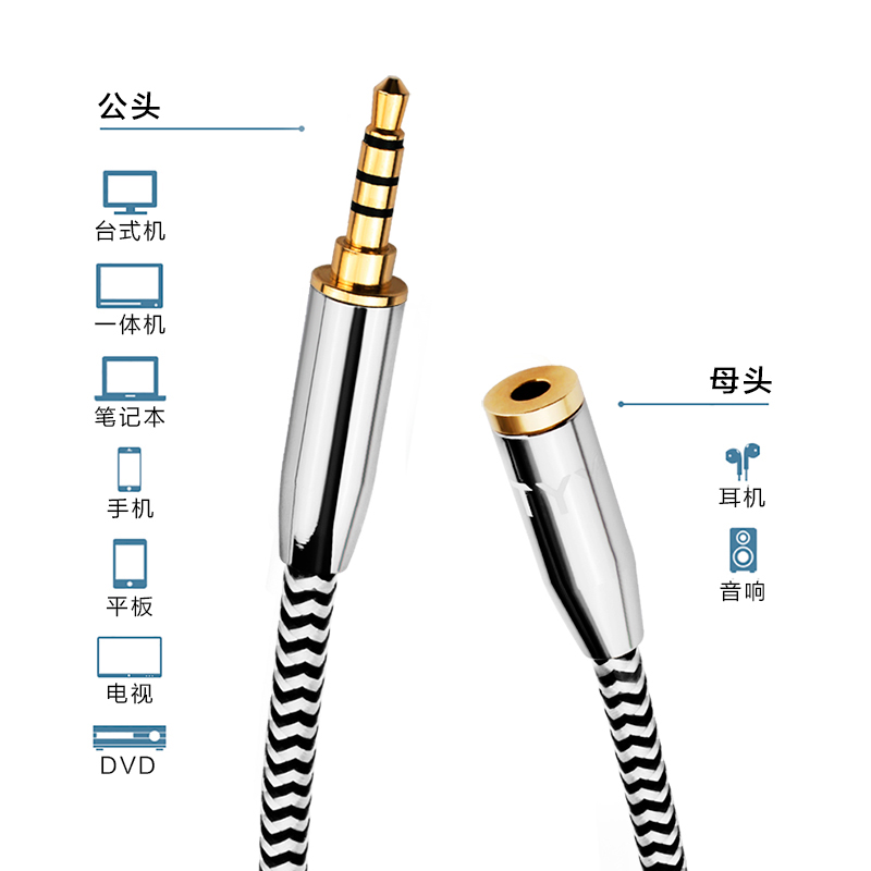 3 5mm audio line to the mother four stage headphones extension line AUX with wheat 4 cell phone car load without distortion plus long line album header K song computer sound microphone wire wire