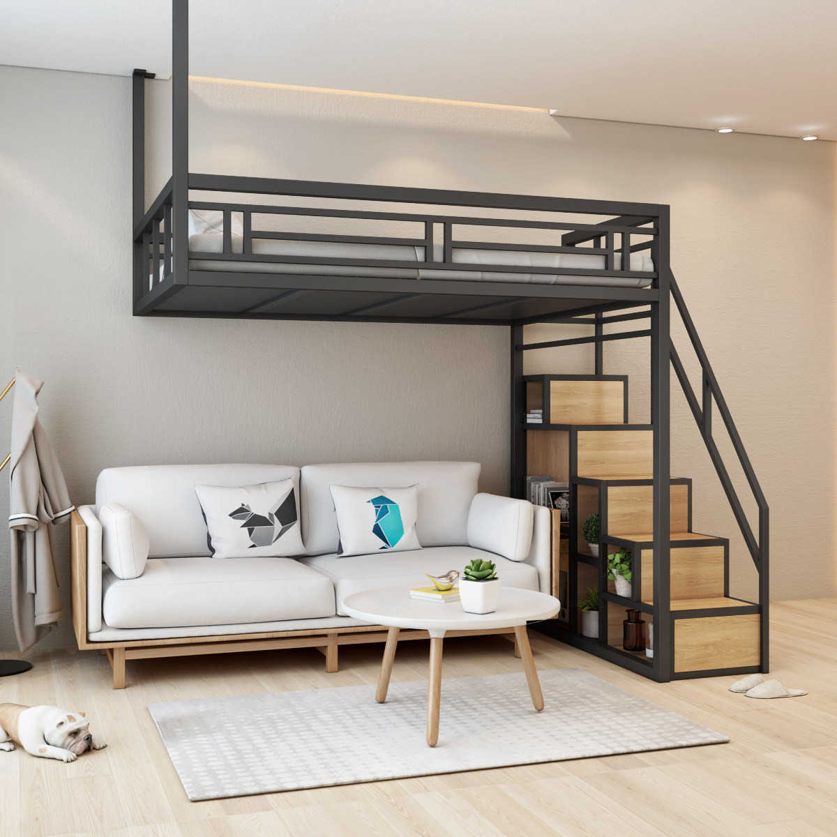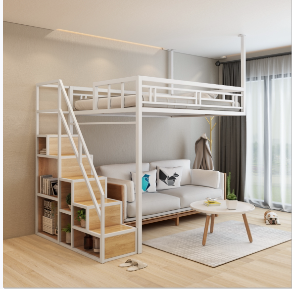 New iron bed spatial duplex two floor aerial bed small household loft bed storage wardrobe elevated bed