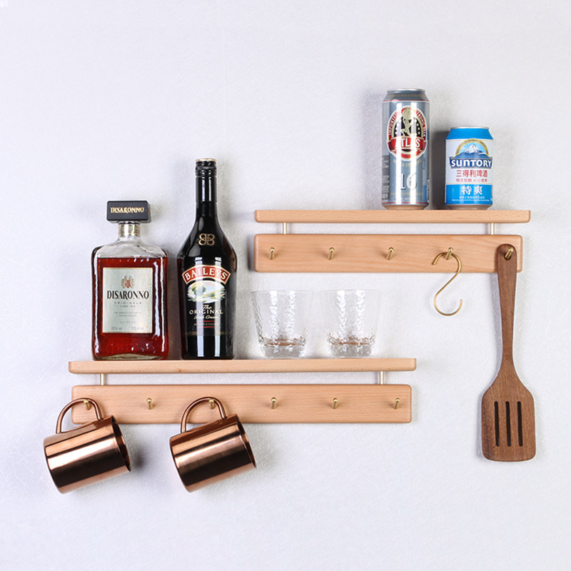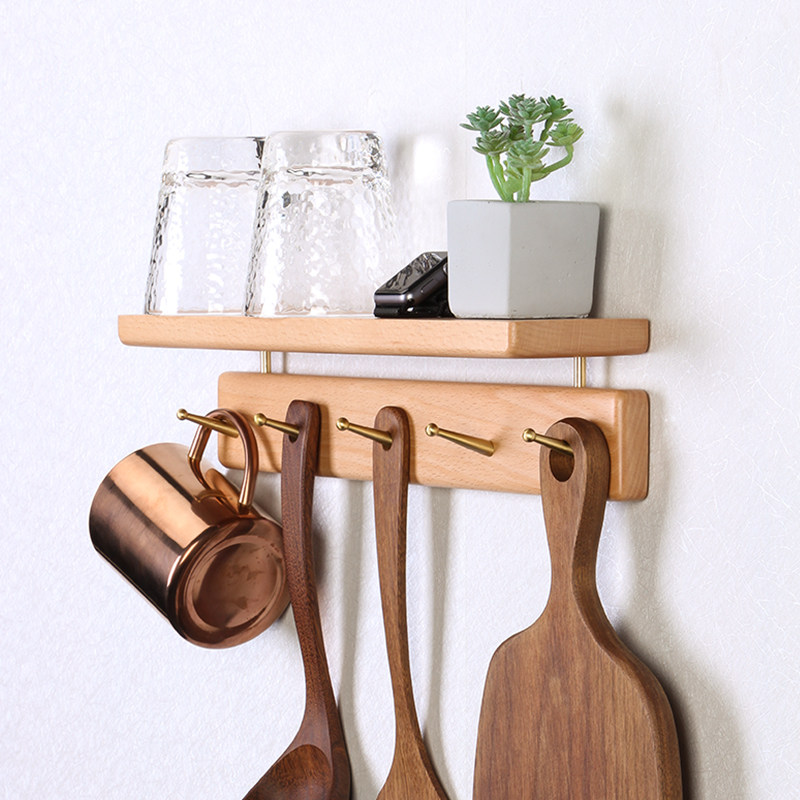 Black walnut wall coat hook solid wood living room porch free punching row hook bathroom door rear coat rack