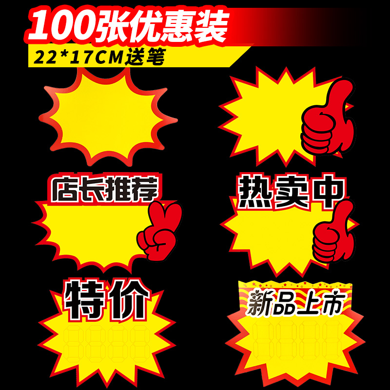 Plus Size Supermarket Price Tag POP Advertising Paper Blast Sticker Fruit Drugstore Mark Price Tag Exploding Flowers Special Price Promotional Card Merchandise List Price Display Cards Personality Creativity New Price Tag Clips