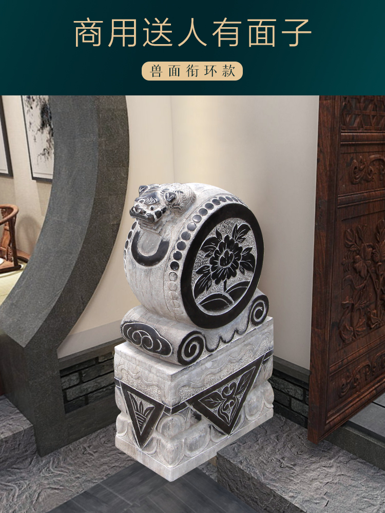 Stone carved door mound stone lions pair of fine sculptures natural green stone imitation ancient courtyard doorway home leoped stone drum hug boulder