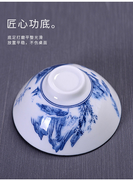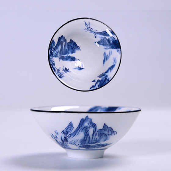 Underglaze color blue and white porcelain landscape landscape Pu'er tea cup bucket shaped tea cup tea cup tea cup tea cup master personal cup