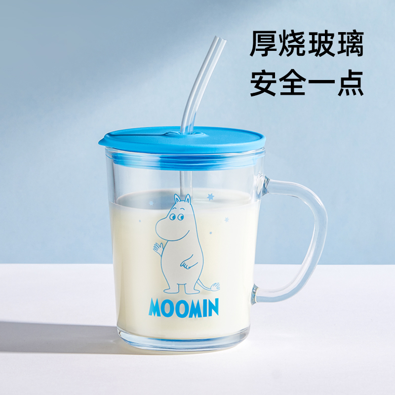Moomin children's milk cup with scale thickened glass straw cup student breakfast cup baby drink milk cup milk powder cup