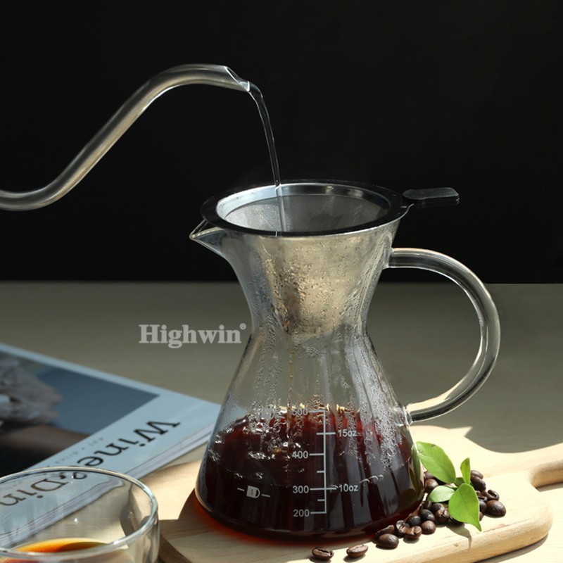 Hand Flush Coffee Maker Drip Leak Jug Heat Resistant Glass Sharing Pot Stainless Steel Coffee Filter Funnel free of filter paper with scale