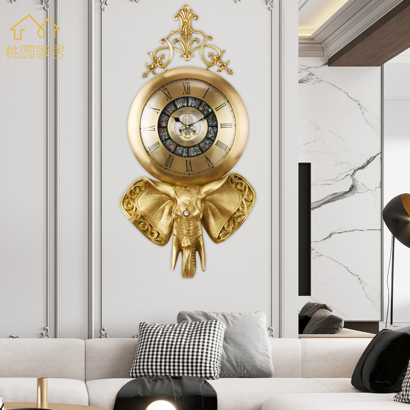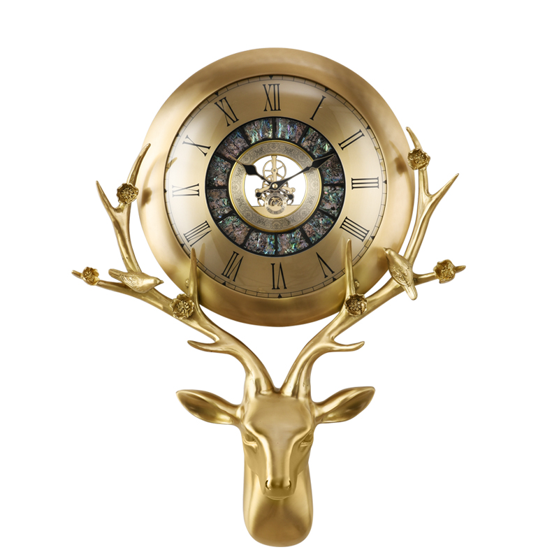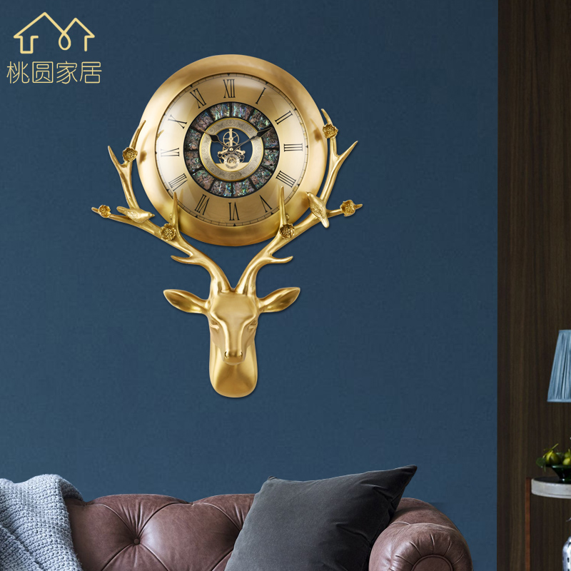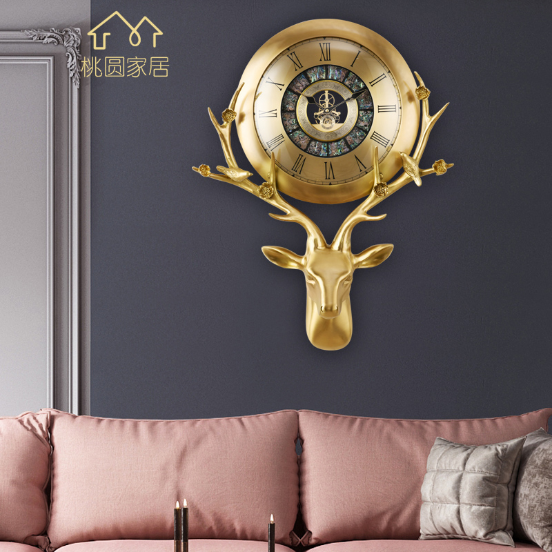Light luxury modern pure copper living room wall clock brass deer head clock American Villa porch decoration personality creative clock
