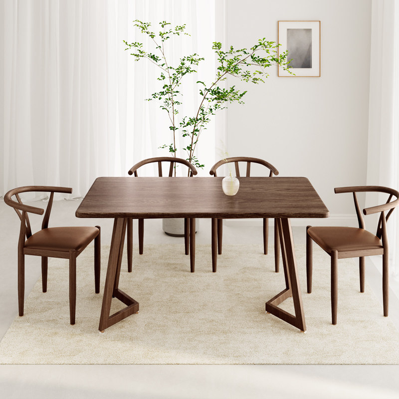 Original wood grain 120*60V character black PU horn chair*4 walnut grain 120*60V character coffee color PU horn chair*4 log white 120*60V character white PU horn