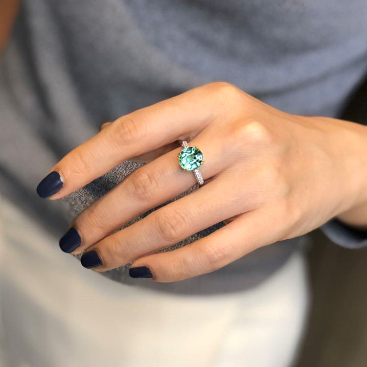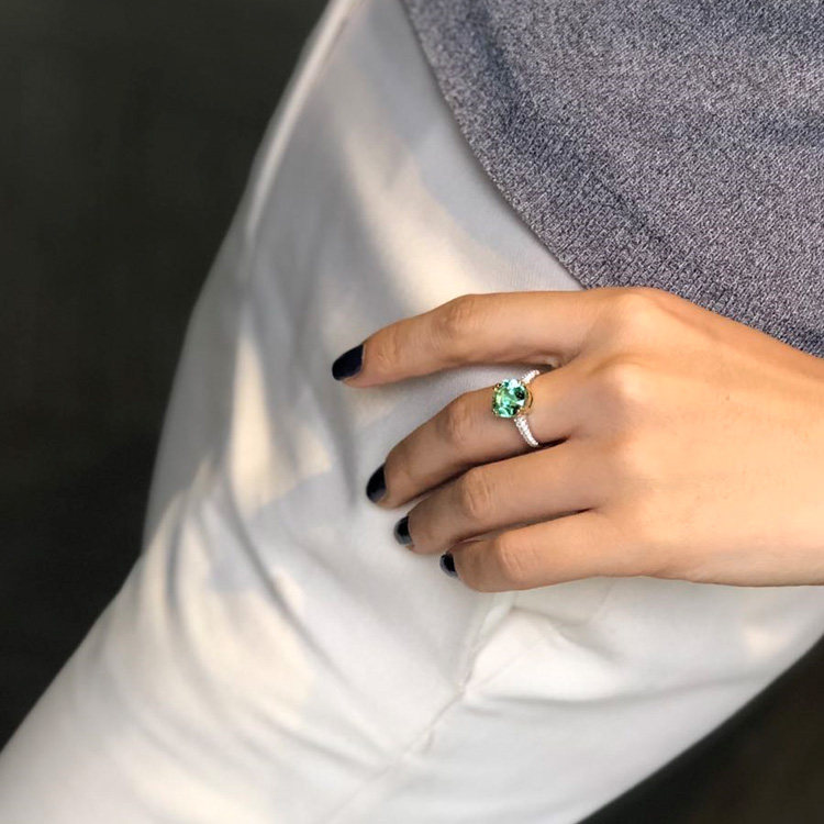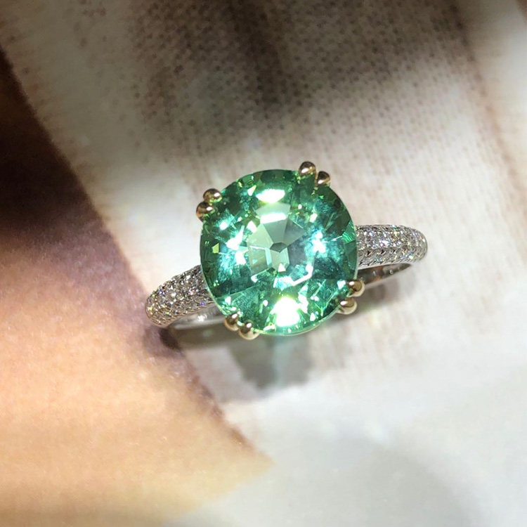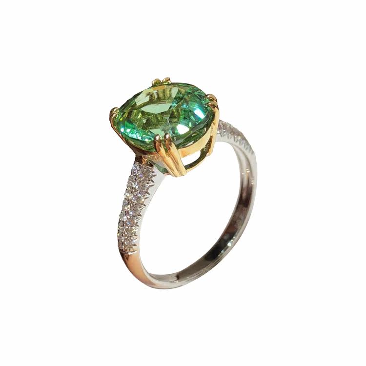 Guomao Jewelry Natural Round Mint Green Tourmaline Ring 18K Gold Diamond Set Women's Ring Simple Customization