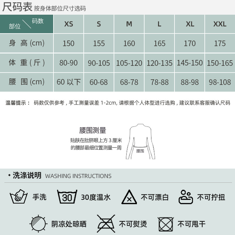 XS (80-90 kg) Waist Circumference (60cm or less) S(90-100 kg) Waist Circumference (60-68cm) M (100-110 kg) Waist Circumference (68-78cm) L (110-120 kg) Waist Circumference (78-88cm) XL (120-130 kg) Waist Circumference (88-98cm) XXL (130-140 kg) Waist Circumference (98-108cm