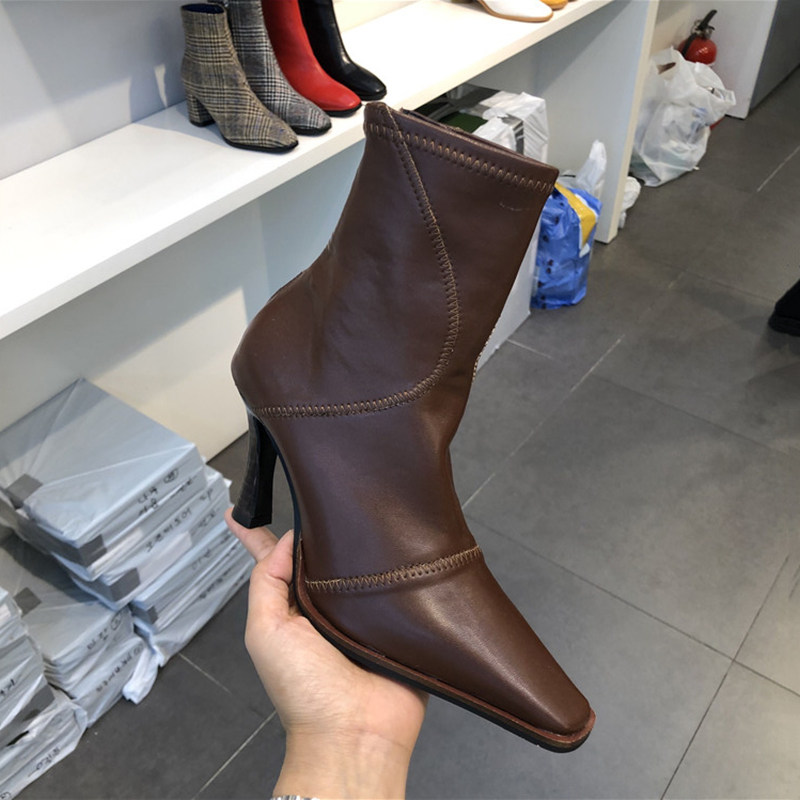 Korean old board lady recommends small crowdfunding ~ ~ upper foot handsome retro pointed high heel short boot