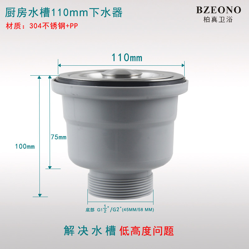 Baizhen kitchen sink 110mm drainer wash basin filter 1 inch and a half 2 inch screw bottom 58 water accessories